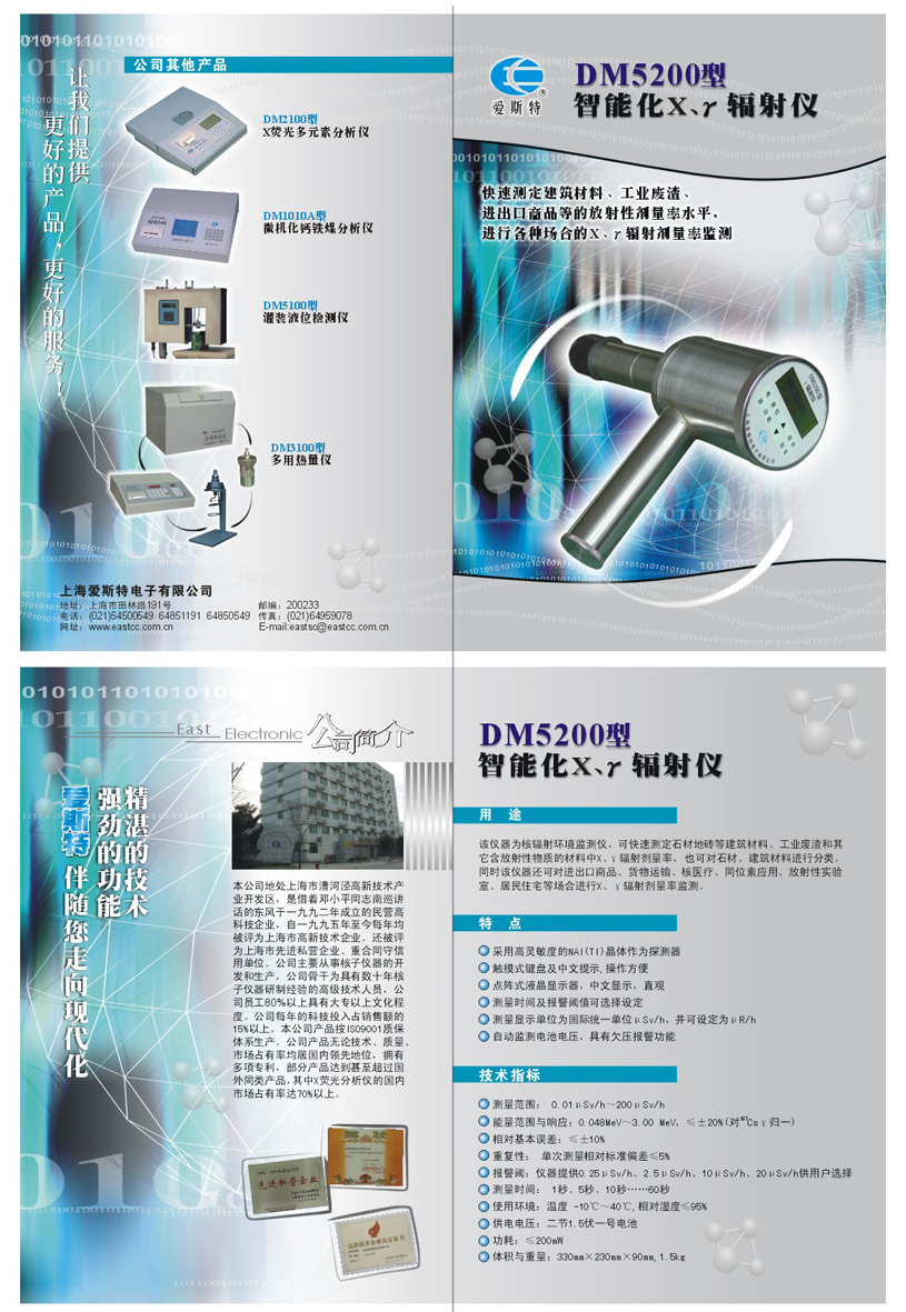 DM5200型輻射儀是一種環境監測用χ-γ輻射劑量率測定儀,廣泛用于建筑材料、進出口商品、運輸物品、核醫療、同位素應用的等需要測量放射性劑量率水平的場合。a.測量范圍: 0.01μSv/h~200μSv/h,b.能量范圍與響應:0.048MeV~3.00MeV≤±20%(對137Csγ歸一), c.相對基本誤差:≤±10%,d.重復性: 單次測量相對標準偏差≤5%,e.測量精度: 以置信度95%時,測量時間15秒時一次讀數≤±10%.