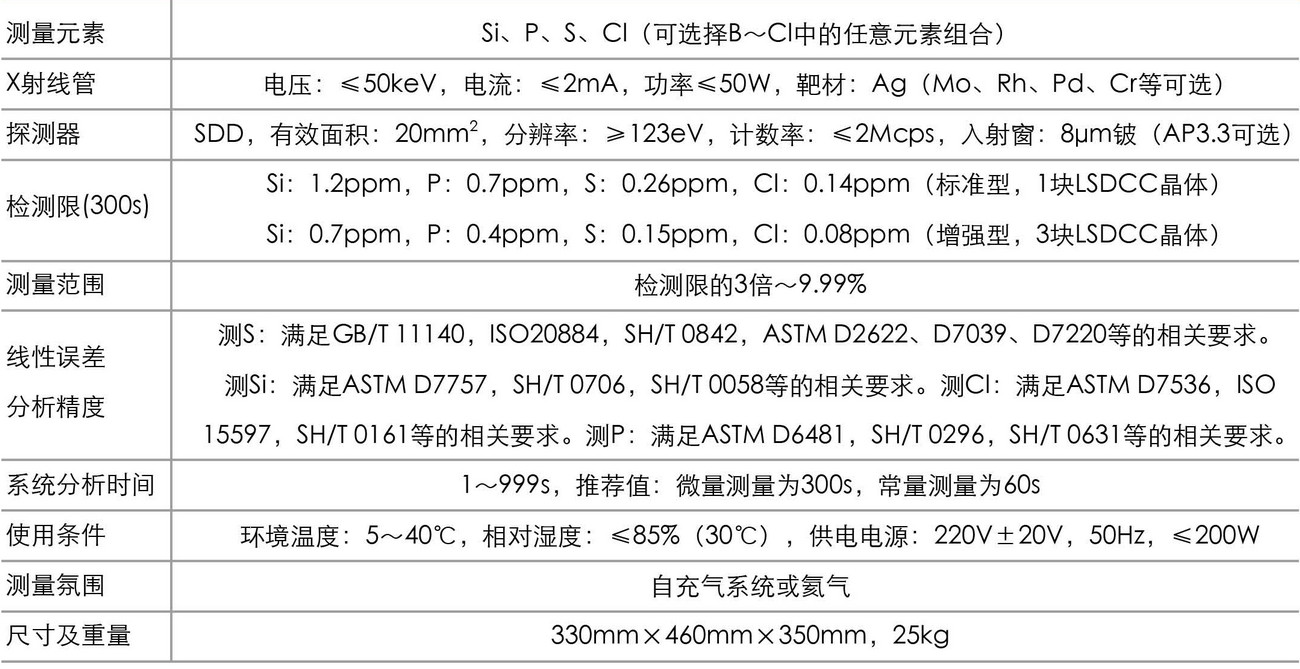適用于煉油廠、檢測及認證機構、油庫、實驗室測量范圍從0.5ppm到10%的各種油品(如汽油、柴油、重油、殘渣燃料油等)、添加劑、含添加劑潤滑油、以及煉化過程中的產品。