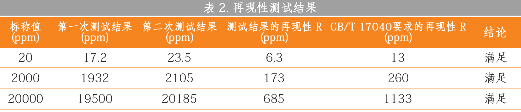 所有測試結果的重復性r 均小于GB/T 17040要求的重復性r,表示DM1260測硫儀完全滿足2019版本的GB/T17040有關重復性的要求。