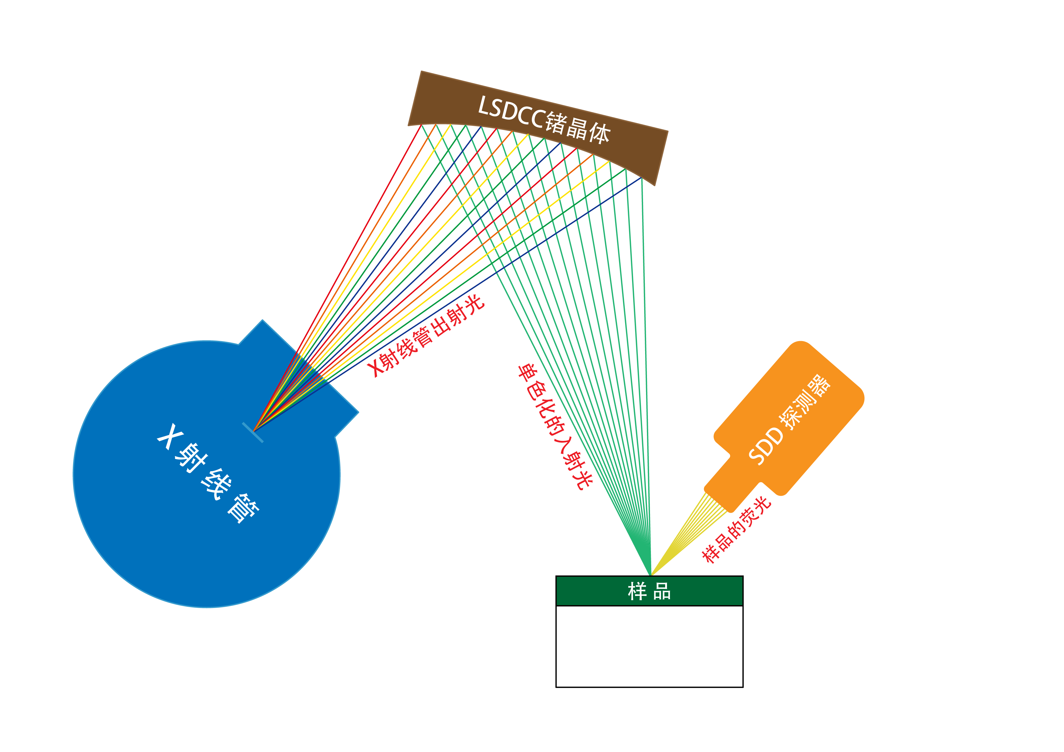 由于輕元素熒光產額很低,所以DM2500用以LSDCC實現單色化的高效率單色激發射線來激發輕元素。