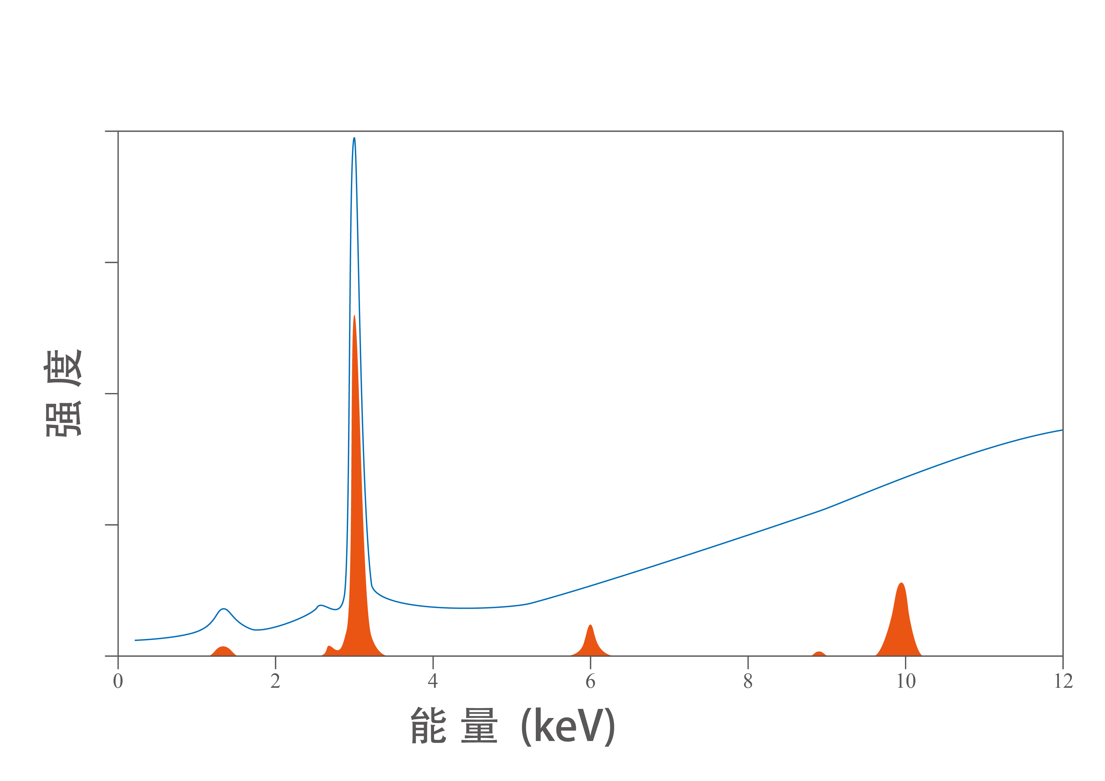 傳統XRF,特別是EDXRF,無法實現超輕元素準確測量的一個主要原因是X射線光管出射譜中連續軔致輻射的散射使得X射線熒光光譜的連續散射背景較高,而原子序數越低的元素熒光產額越低,較低的熒光射線強度將淹沒在較高的背景之中。